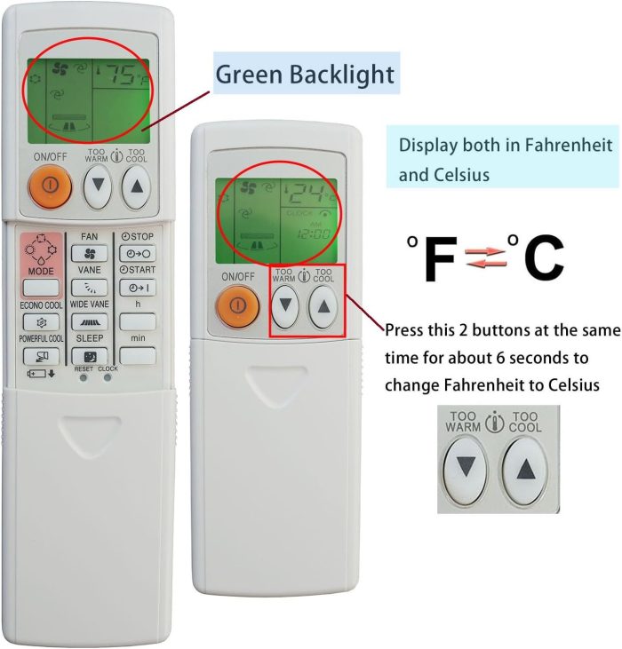 Universal Replacement Remote Control for All Mitsubishi Air Conditioner (Fahrenheit)
